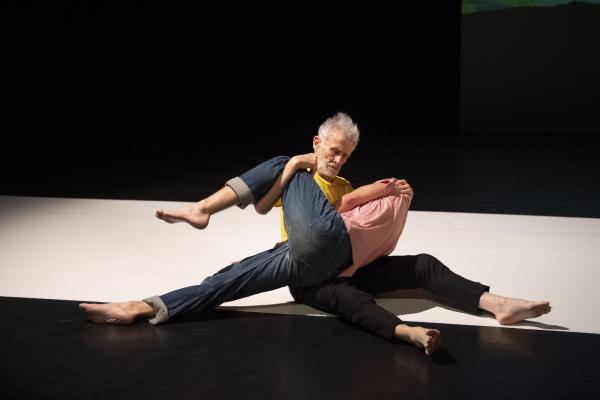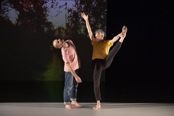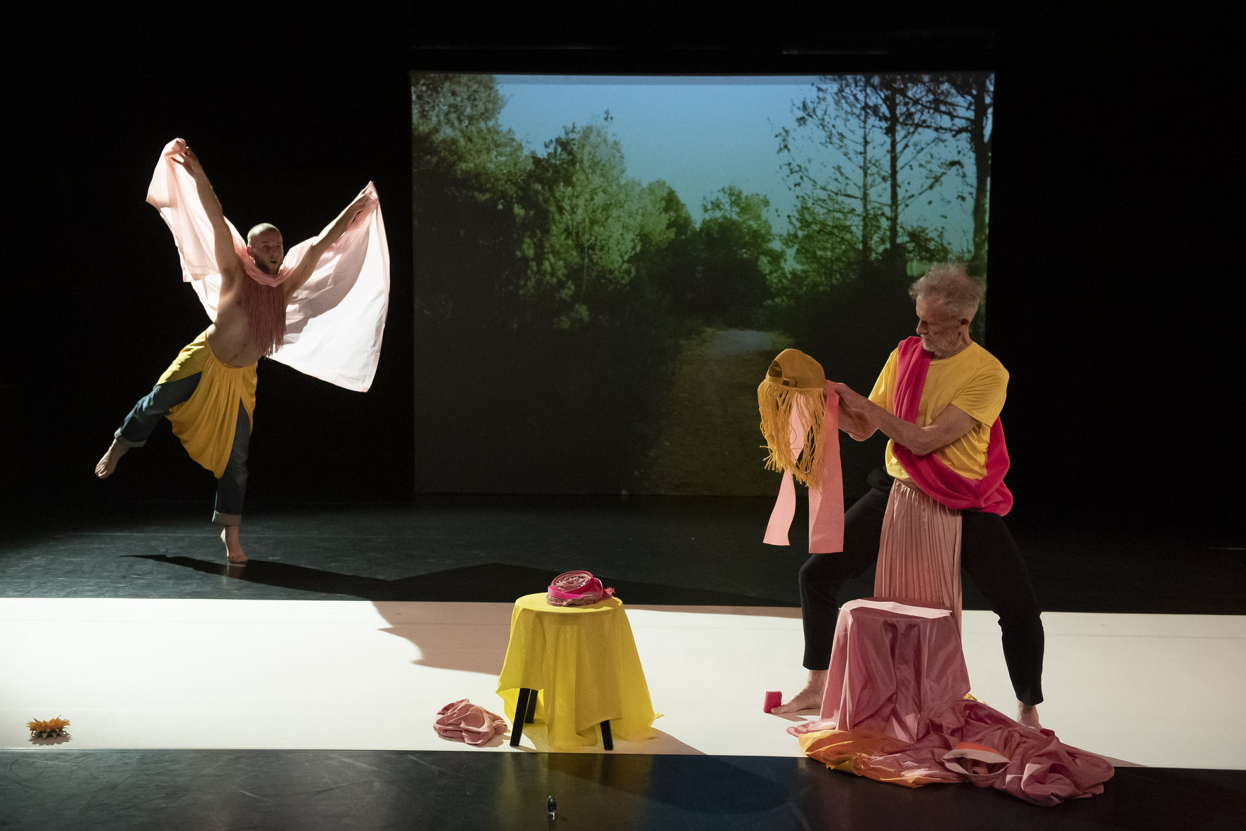 Hugues en profite parfois, il se laisse aller en sauts puissants, athlétiques, en profite pour glisser une figure de hip-hop, puis revient au calme. Jean, flexible, a le geste sûr, juste, précis, économe. Rien n’est laissé au hasard et pourtant chaque mouvement semble touché par la grâce. Hugues est au début de sa carrière, Jean a dansé pour les plus grands de Blaska à Bagouet, de Béjart à Petit, mais aussi les Dupuy, Jean Babilée, Peter Goss ou Jennifer Muller, a été prix de Bagnolet en 1977, a chorégraphié pour le trio Piollet-Guizerix-Paré… Son corps tout entier est porteur de toutes ces gestuelles au bord de disparaître, ce qui sera le cas quand les derniers artistes chorégraphiques de ces fameuses 80’ arrêteront de danser. En tout cas, à les voir tous les deux sur le plateau, on distingue les évolutions de la danse, et ses développements actuels – un peu plus en force – et même les pensées qui ont présidé à leur construction. Le chemin en pleine nature joliment projeté en fond de scène, nous rappelle que le sentier est étroit, pour garder vivante cette histoire des corps.