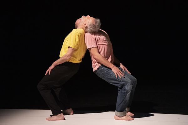 Générations - Battle of Portraits est un duo tout à fait savoureux signé Fabrice Ramalingom, avec, à ma gauche, Jean Rochereau, fringant danseur de 78 ans, à ma droite, Hugues Rondepierre, fougueux jeune homme de 23 ans. Entre les deux, Fabrice qui apparaît pour lancer ce duo et commence à les assembler par une gestuelle du déséquilibre, un élan retenu, puis disparaît. Jean et Hugues se confrontent plus qu’ils ne s’affrontent. Ils font les mêmes gestes, mais fort différemment. L’un est tout en muscle. L’autre tout en os. L’un est volonté et effort. L’autre n’en a plus besoin. Etre lui suffit. Ils s’étreignent ou s’empoignent. Parfois on ne sait pas. Ils tablent sur leurs points forts ou explorent leurs zones de fragilité. Pas les mêmes. Ils se subjuguent plus qu’ils ne se conjuguent. Un duel à fleuret moucheté. Tout en délicatesses.