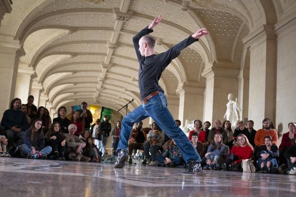 Avec Myriam Soulanges et Simon Le Borgne x Ulysse Zangs sur la Promenade des Marronniers, une Happy manif dans les rues de la ville, la performance de Léa Leclerc dans la vitrine d’un magasin, les Consultations de Mélanie Perrier en face à face dans le Jardin médiéval ainsi que Julien Andujar au boulodrome (à la recherche de Tatiana, sa sœur mystérieusement disparue), la danse investit les espaces uzétiens en dehors des salles, une denrée scénographique dont la ville disp.ose en grand nombre. Impossible donc de toutes les mettre à contribution en une seule année, ce qui offre à Peluchon la possibilité de créer la surprise à chaque édition.