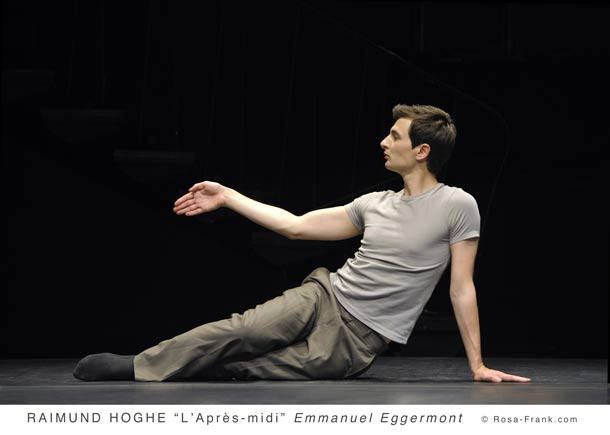 Après une telle plongée dans les univers anglo-saxons, le regard sur le temps ne s'en arrête pas là. Au contraire, la question du temps traversé est omniprésente quand Emmanuel Eggermont interprète, en solo, la sensibilité de Raimund Hoghe pour L'après-midi d'un Faune, œuvre incontournable de Nijinski. La gestuelle d'Eggermont relit celle de Nijinski sous le regard d'Hoghe. Telle une nymphe, le chorégraphe regarde son faune danser.
