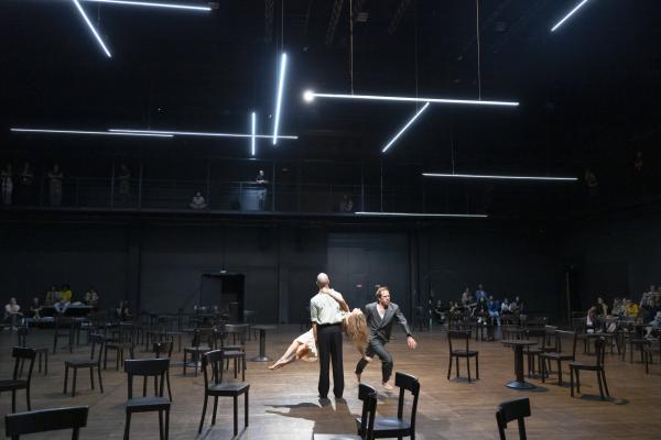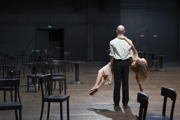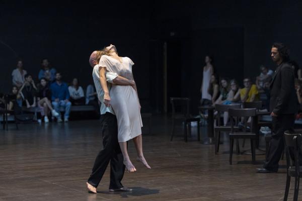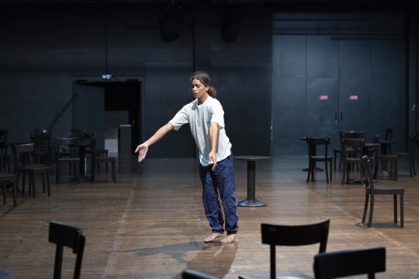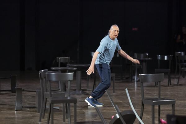 Au début, les danseurs sont en tenue de travail. Il n’y a ni décor, ni accessoires. Façon de remonter aux origines de cette création mythique de 1978. Une « Pina Bausch » en sudisette nous raconte qu’ « au début, il n’y avait pas de chaises » dans Café Müller. « mais ça n’a pas marché, alors on essaie encore… et encore, et d’un coup !... ». Donc pas de chaises ! En tout cas au début. Car elles vont être peu à peu apportées par les interprètes de cette distribution hors pair, qui mélange les plus anciens « de chez Pina Bausch » comme Nazareth Panadero, Michael Strecker ou Jean Laurent Sasportes, aux plus jeunes de [terrain] Letizia Galloni, Simon Le Borgne et Naomi Brito qui composent désormais ce nouveau Tanztheater Wuppertal dirigé par Boris Charmatz.