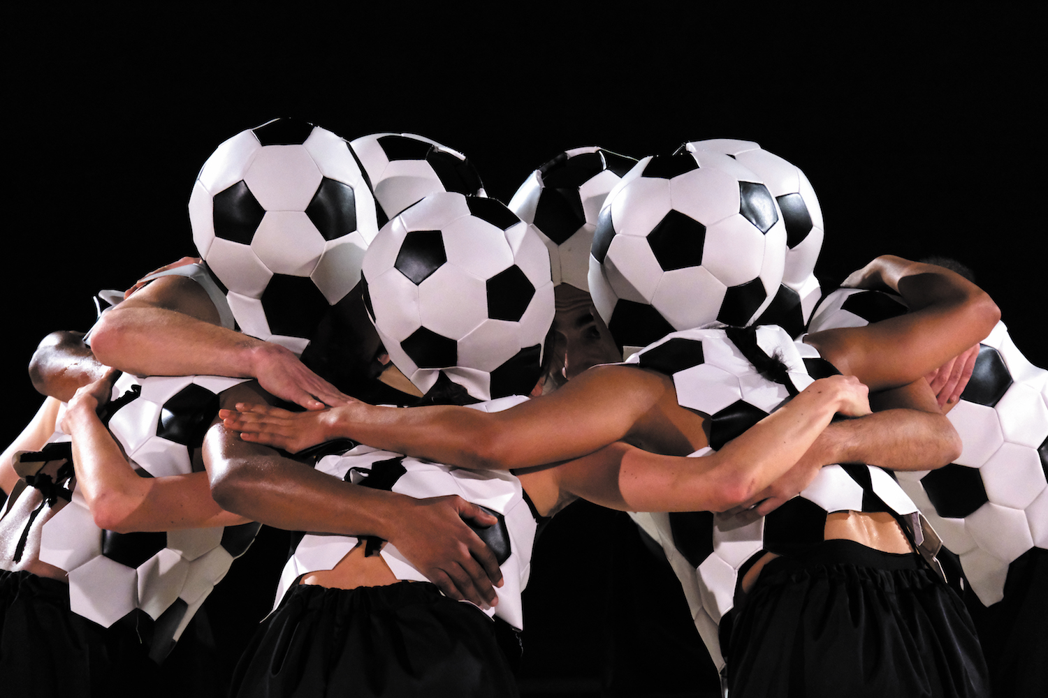 L’effectif de Goal, est plutôt celui d’une équipe de hand que de foot. Il est mixte, bien sûr, comme déjà du temps de Carmen Pomiès ou comme dans le cas de Discofoot. Les mouvements visent à sublimer ceux, prosaïques ou terre à terre de corps mus par l’émulation et prêts au combat. La pièce « convoque l’imaginaire universel du ballon rond et de ses intensités émotionnelles », indique la note d’intention des auteurs. C’est une performance, mais plutôt au sens artistique que ce mot a pris dans les arts plastiques et dans ceux de la scène. Autrement dit, les gestes y sont gratuits. Précisément, c’est la « dramaturgie d’un match de football », à base de « gestes clés et d’émotions », qui a permis à Fattoumi-Lamoureux, ex-étudiants en STAPS, à l’université René Descartes, de mettre au point les variations qui découlent du thème d’une pièce au titre parlant. Celui-ci est monosyllabique, bref et efficace ; le mot signifiait au XIXe siècle en Angleterre « but » dans le jeu des rois qu’est le polo avant de désigner le cadre où le marquer, au rugby, au hand comme au foot puis le gardien ou portier censé l’empêcher en protégeant sa cage.