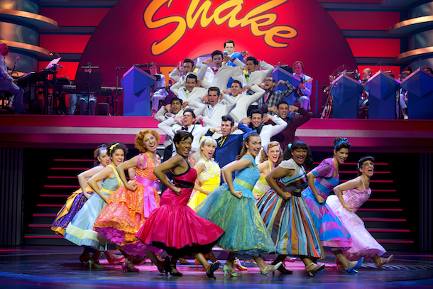 Ouf, la production du groupe Stage Entertainment tient ses promesses et offre chaque soir à un public ravi un concentré pétillant d’entertainment à l’américaine. Dans une mise en scène originale due à Martin Michel, Tim Van der Stratten et Véronique Bandelier, les deux amoureux Sandy et Danny évoluent sans faux pas au milieu de leurs condisciples du Rydell High School, icarnation type d’un lycée US des années soixante. Côté costumes, les jupes corolles pour les filles et la panoplie jeans-blousons-gomina pour les garçons sont au rendez-vous, tandis que les décors évoquent avec habileté l’intérieur d’un dinner ou le bal annuel du lycée. Le tout dans une palette chromatique qui varie du jaune citron au rose fuchsia en passant par les dégradés de vert, mauve et bleus du nuancier alors en usage.