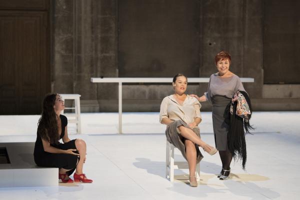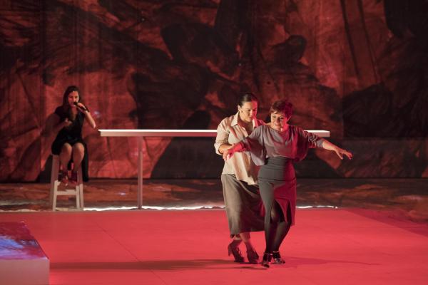 Entre pas de tango maternel, chant fado de Silvia Pérez Cruz et un taranto dansé aux castagnettes par Molina, l’enfant terrible du flamenco et sa mère s’étreignent dans une roulade intense, conversent entre elles ou avec les musiciens et semblent finalement respecter une convention pour ne pas envoyer l’enfant à naître dans une vie sans lien avec l’universel.