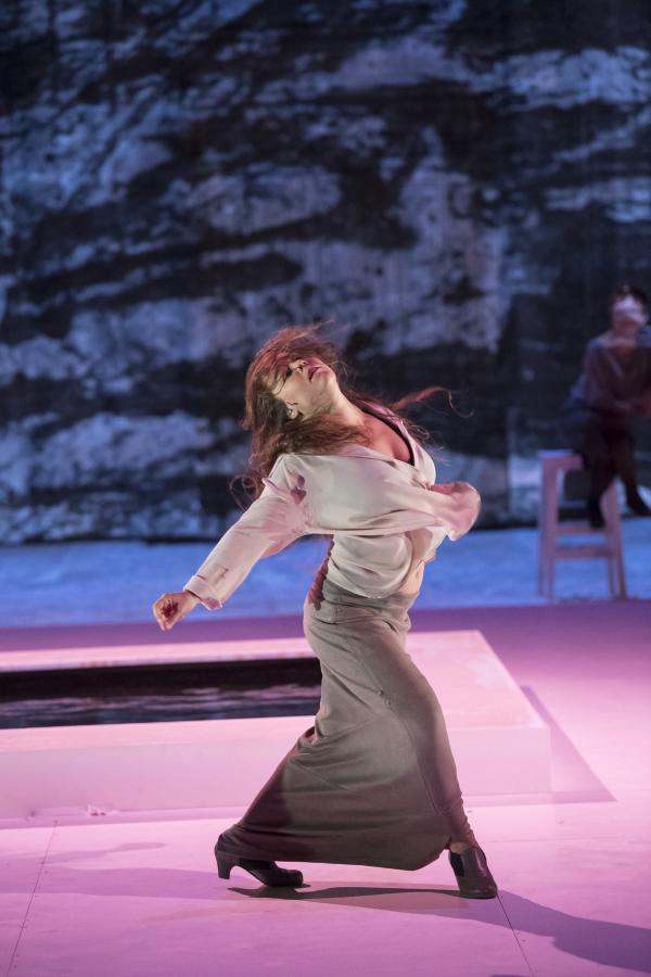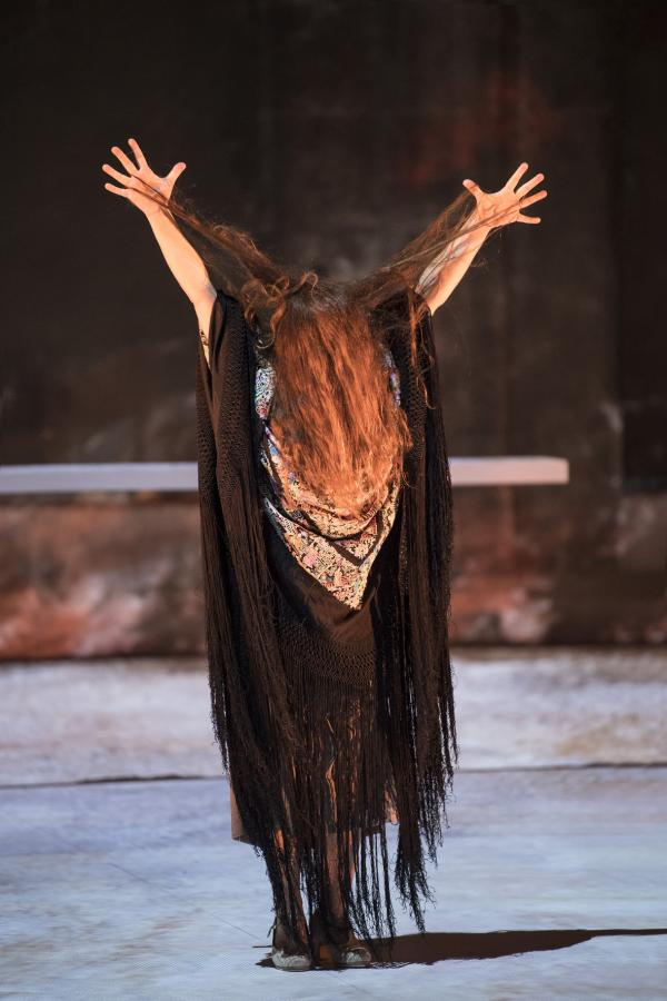 Voilà un cri qui résonnera pendant longtemps, d’autant plus qu’il remplira un certain vide. Molina devra faire une pause créatrice. Elle changera de vie. C’est le thème de ce trio au féminin, accompagné de quatre musiciens. Molina est enceinte. Et elle le montre. La nudité ne lui fait pas peur. Ni avant, ni maintenant. Il y a pourtant quelque chose de surréel à la voir marteler le sol et vriller tel un derviche, alors qu’elle est enceinte de plus de sept mois. Elle n’adoucit à peine son zapateado, doit juste adapter son braceo à la rondeur supplémentaire. Et nous parle plutôt de sa difficulté à correspondre aux normes féminines du flamenco, limite éprouvée depuis qu’elle pratique cette danse et qui l’a poussée à dépasser les codes du Graal de Séville.