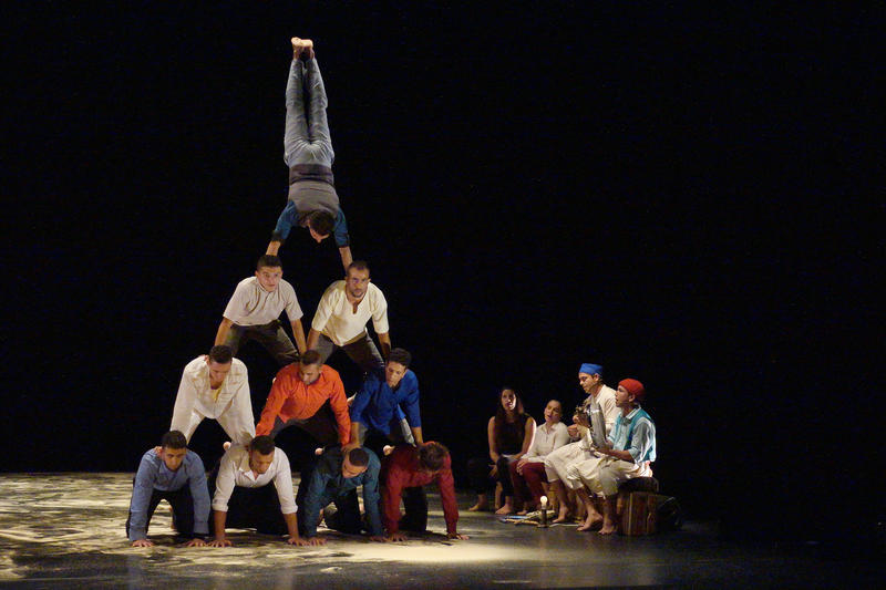 Les artistes sont époustouflants. Les roues s’enchaînent à une vitesse phénoménale, les pyramides se montent en un clin d’œil et prennent différentes formes jusqu’à amonceler dix interprètes, ou bien campent six hommes sur les épaules d’un seul.