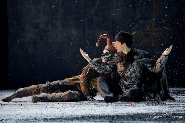 L’Ophélie de Lara Wolter est à la fois délicate et inflexible, avec ses envolées dans des portés surprenants. La Reine Gertrude incarnée par Emmy Stoeri est impériale, et distille dans chaque geste une autorité naturelle. Le Prince Hamlet de Marin Delavaud mêle grandeur tragique et intimité fébrile. Les autres personnages, moins centraux, sont tout aussi excellents qu’il s’agisse du Polonius de Pierre-Émile Lemieux-Venne, de l’Horatio d’Alice Pernão ou du Laërte d’Erwann Jeammot. Le duo Nirina Olivier en Rosencrantz et Jasper Arran en Guildenstern est tout à fait hilarant ; le fantôme de Yorick appartient également à ce registre tragi-comique et le défend avec brio.