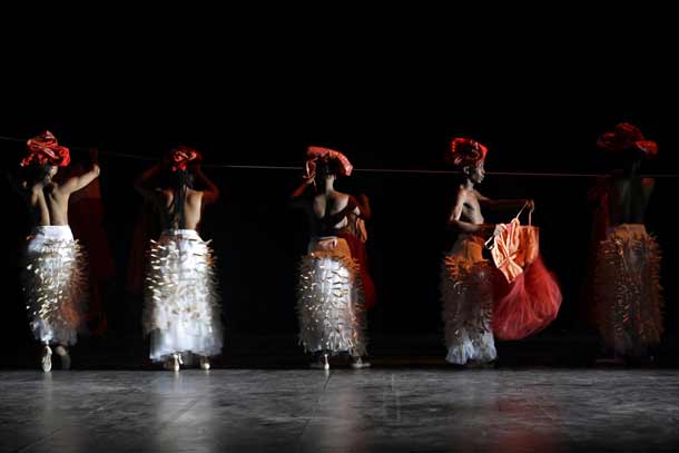 C’est alors qu’un percussionniste génial, Given « Azah » Mphago entre en jeu, bientôt suivi de la chanteuse Litho Nquai. Les « ballerines » déchaussent leurs pointes, et la scénographie – toujours exceptionnelle chez Nyamza – vire du blanc au rouge, tandis que la musique traditionnelle réveille les corps et les esprits. Substituant au corset de l’académisme des danses sud-africaines elles retrouvent peu à peu leur culture et leur liberté quand montent du plateau des chants traditionnels. Les interprètes se sont enfin débarrassés de leurs coquilles et sont prêts à partir vers une nouvelle aventure – la vie.