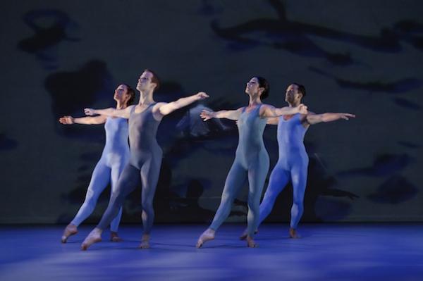 Face au Concerto pour violon de Dutilleux, les différentes époques de l’histoire de la danse coexistent avec bonheur. Eléments de danse baroque, motifs de ballet, la révolution Nijinski, le contemporain. Avec, pour trame de fond, l’approche cunninghamienne du plateau, de l’équilibre, du mouvement... Mais le rapport au sol se fait ici aussi changeant et varié que les tempi.