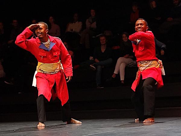 On le voit et l’entend, le hira gasy a une forme opératique. Cette danse originaire des plateaux centraux de la Grande Île semble très simple et n’exige aucun mouvement virtuose. Elle vise l’unisson et la symétrie et exige mémorisation de nombre d’ornements et parfaite coordination d’ensemble. Le hira gasy ne se dissocie ni de la musique, ni du chant, ni de la pantomime. Le hira gasy prend sa source dans des rituels comme le famadihana ou retournement des morts, une coutume de « doubles funérailles » ayant une fonction phatique entre les mânes des défunts et le monde des ancêtres. Il se déroule en plein air à l’occasion de fêtes traditionnelles, avant de prendre la forme de représentations spectaculaires, comme dans le cas présent, dans le cadre théâtral d’un amphi muséal – en l’occurrence, à l’initiative de la Maison des cultures du monde, du Centre français du patrimoine culturel immatériel et du Collectif 12 de Mantes-la-Jolie.