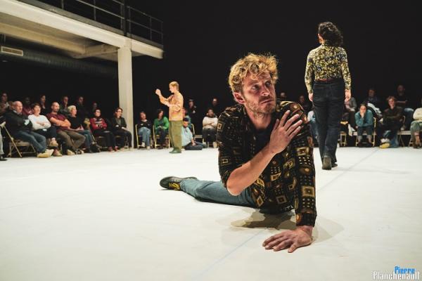 L’ambiance est décontractée, la frontière scène-salle s’estompe avant même d’être créée. Tout est fait pour que les barrières tombent, pour que les spectateurs se livrent à la rencontre. Par leurs bras tendus vers les gradins, par des regards doux mais insistants, les danseurs entrent en contact platonique mais de plus en plus intense avec les spectateurs.