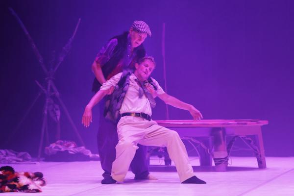Comment qualifier Hors-Normes, sauf à dire que c’est certainement la pièce la plus déjantée de Claude Brumachon, « hors norme » à tout point de vue – à commencer la chorégraphie. Car c’est une pièce écrite « lache » dans laquelle chacun garde son autonomie tout en s’inscrivant dans ce canevas qui fait volontiers penser aux immenses toiles de Claude Viallat, ou aux tissus d’Olga de Amaral. La scénographie, qui transforme une chaise banale en trône improbable avec ses branchages qui les hérisse, ou ces bois en forme de tipi, a également quelque chose de l’Art brut. Et la création de Brumachon a aussi cette accointance avec cette forme artistique en ceci qu’elle excède les attendus d’une œuvre « culturellement informée ». Dit plus simplement : Hors-Normes sort des sentiers battus car Claude Brumachon, et ses complices se moquent totalement des codes artistiques en cours. Ils ne cherchent pas à faire bien. Ils cherchent à dire vrai.