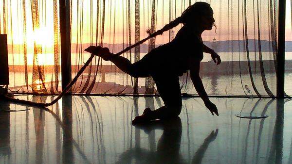 Ensuite, nous parvenons dans une autre salle où l’unique lumière est diffusée par les immenses baies vitrées qui surplombent la mer où le soleil couchant répand de magnifiques couleurs chatoyantes. Ainsi, Tresse de et avec Nour Mzoughi se déploie dans une ambiance irréelle. La jeune femme raconte sa vie, son enfance, l’importance de l’apparence puis l’âge adulte avec toutes ses contraintes. Son corps exprime toutes ces phases avec poésie, violence et fait même ressentir un certain rejet inhérent à certaines croyances. Ce passage de l’adolescence à la femme est dessiné grâce à une très longue tresse qu’elle s’accroche dans les cheveux, cette tresse n’est pas synonyme de liberté étant donné qu’elle l’empêche d’évoluer comme elle le désire. Aussi la danseuse finit par couper cette attache avec un hachoir de cuisine afin de vivre sa vie comme elle l’entend. Sa danse est très enrobée, fort émouvante et très limpide.