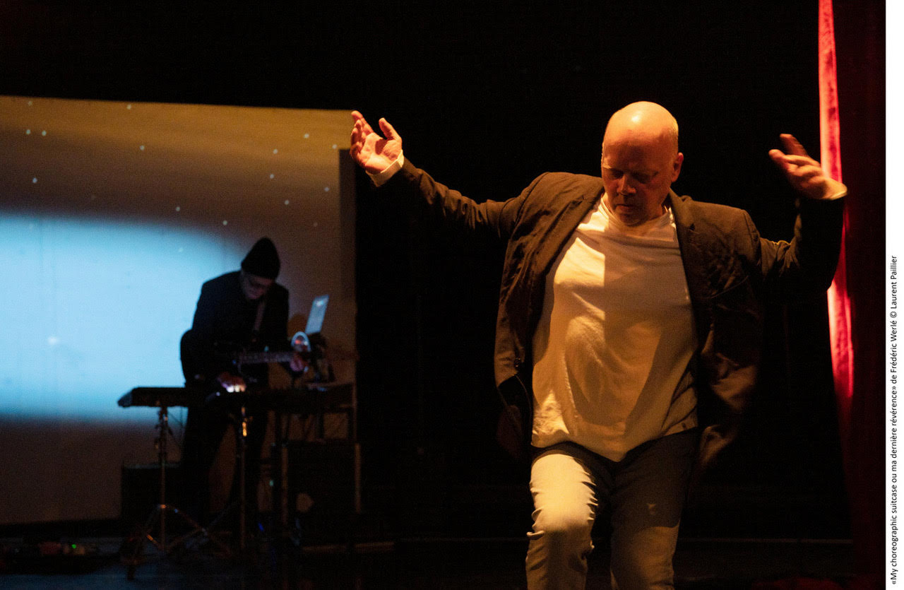En ouverture de la soirée du 13 septembre, Frédéric Werlé se permet toutes les folies dans My choreographic suitcase ou ma dernière révérence en relatant avec tellement d’humour et une incroyable présence ses souvenirs de danseur et chorégraphe. Très à l’aise sur un plateau, il brandit un brigadier qui frappait autrefois les trois coups annonçant le début du spectacle. Pour lui, le conserver, est synonyme de tant de mise à nu, de tracs et de bonheur. Thomas Jolly l’a remis au goût du jour lors des JO au début des différentes disciplines.