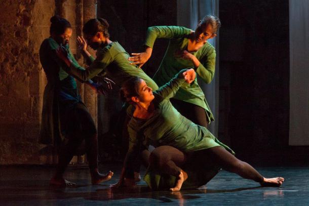 Cette danse-là crée comme un univers végétal, où quatre figures sorties d’un bas-relief danseraient le lichen qui pousse sur les murs. La pierre a faim et met la danse en suspension, dans un méta-Odissi qui n’a pas peur du ralenti, ni d’évoquer l’excitation d’un groupe de filles à vivre ensemble quelques aventures et découvertes, sous l’égide d’une supérieure, en la personne de Maitra.