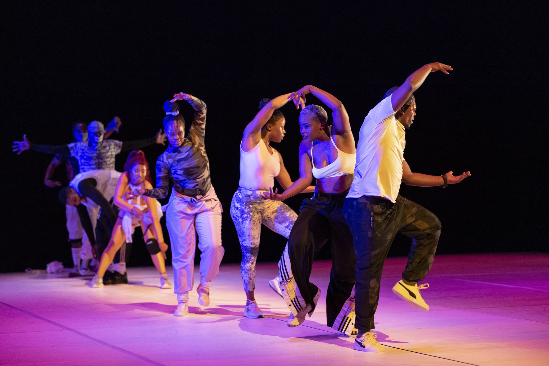 Curieusement, après l’intense rencontre avec le public à l’entracte, le 4e mur s’est reconstruit, la revue se refermant sur elle-même. Dianor laisse alors à la troupe toute liberté de se faire plaisir, voire trop de liberté. Mais cette façon très lointaine de chorégraphier est aussi le résultat des circonstances de création qui ont obligé les protagonistes à travailler de façon intermittente. « Et à chaque fois qu’on se retrouvait, il a fallu reprendre à zéro », dit le chorégraphe à propos de ce résultat certes énergétique et joyeux, mais un peu décousu, animé par la danse pantsula et un corps souvent collectif et virtuose.