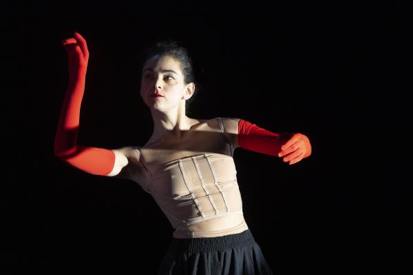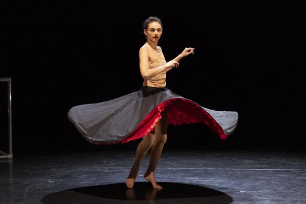 La première partie de ce programme sous l'enseigne du devenir-femme appartenait à Sarah Adjou et son solo Revue. Où le devenir-autre est incessant entre cabaret, tango, acrobatie ou, pour le premier tableau – très prometteur – une sorte de freak show tendance butô. S'il paraît naturel que l’on y rencontre des univers plus ou moins poignants (on se serait volontiers passé du numéro de la poule, par exemple), il serait surtout nécessaire d'unir toutes ces matières dans une proposition globale d’une plus grande cohérence, l'ensemble devant valoir plus que l'addition de ses composantes. Car un cabaret sans meneur ou meneuse de revue ne fait pas spectacle. Mais si avec le temps on devient femme, on peut aussi devenir chorégraphe…