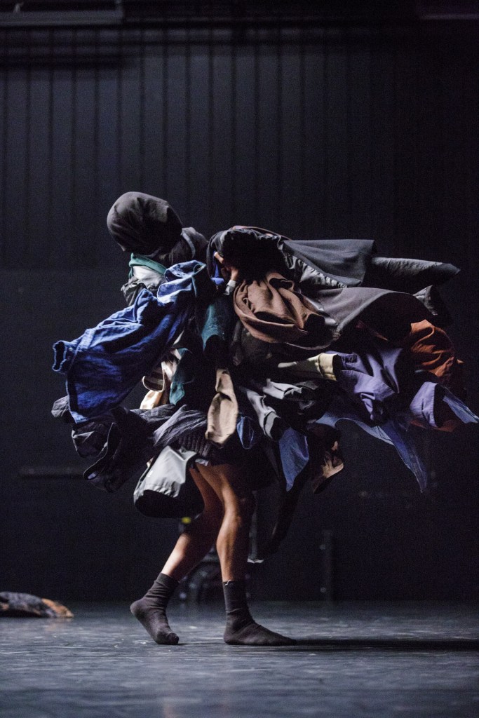 Interviennent ensuite les vêtements qui participent de l’impression d’être emporté par un tourbillon orgiaque. Sauf qu’au lieu de jouer sur la nudité comme vecteur libératoire, comme on l’attendrait sans doute en Occident, voici des dizaines de manteaux, pulls et chemises qui s’accumulent, tels des passeurs, d’abord sur le plateau et puis sur un seul corps tournoyant.