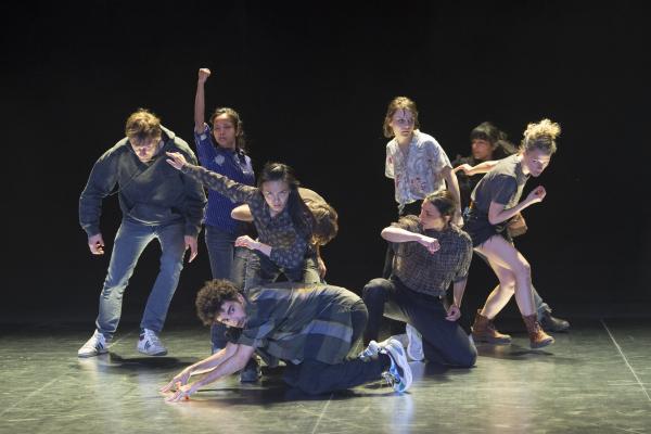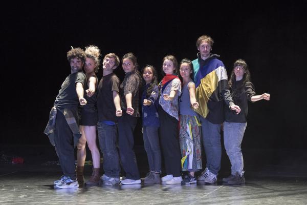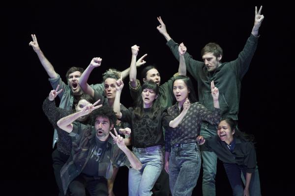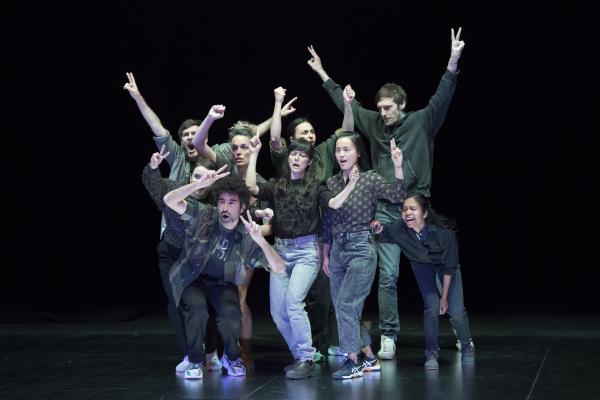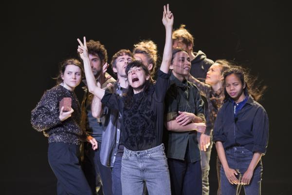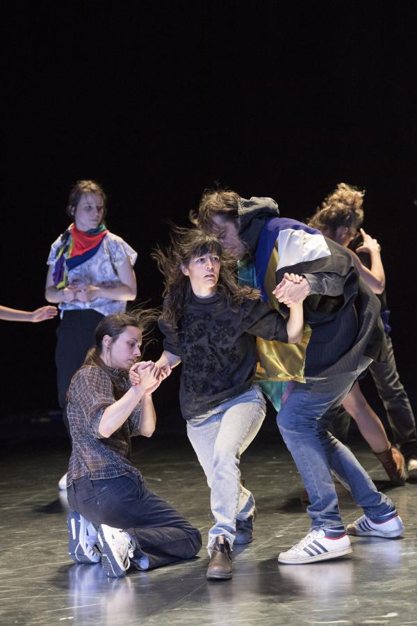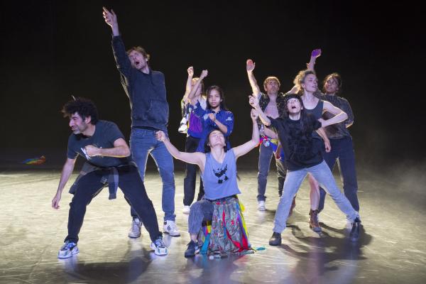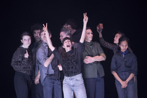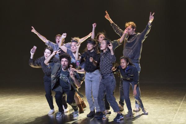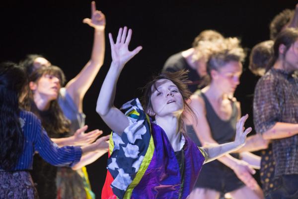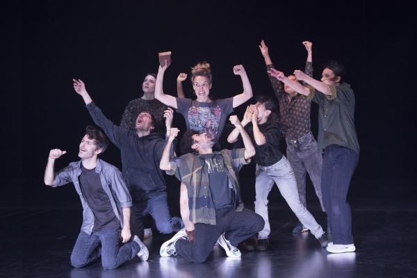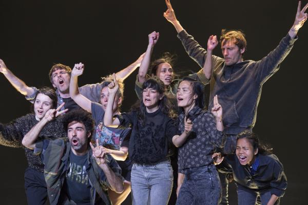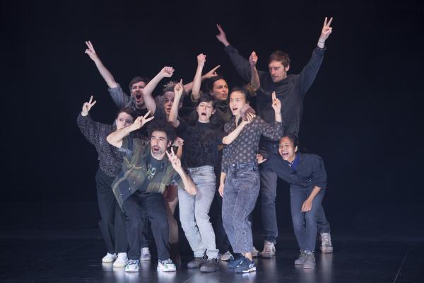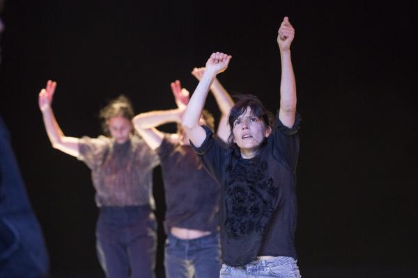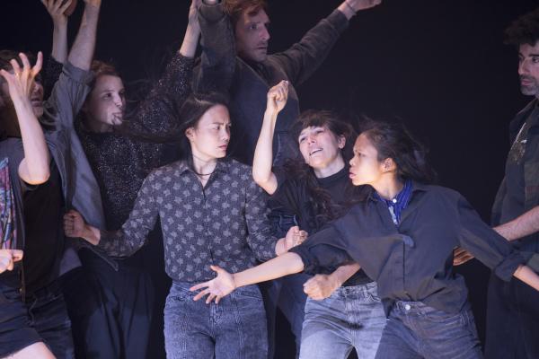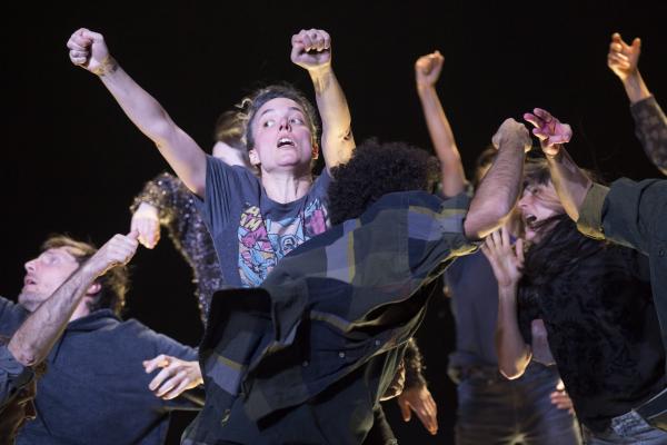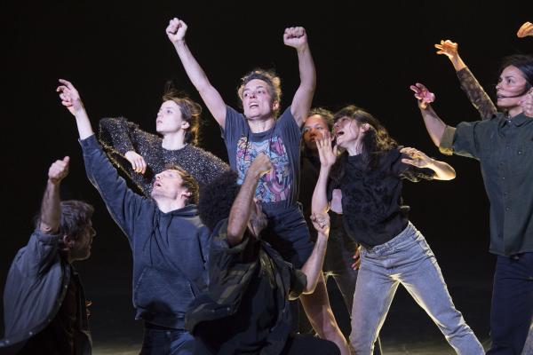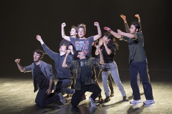 Joanne Leighton mobilise un groupe de neuf interprètes pour interroger les grands rassemblements d’individus: Qu’est-ce qui relie les personnes qui manifestent ou dansent ensemble pour créer une sphère partagée, un espace commun qui peut être politique, utopique, sensoriel ou spirituel. Depuis longtemps, la chorégraphe collectionne des photos prises lors de grands rassemblements de personnes, unies dans une aspiration partagée. People United part de ces images, en reconstitue certaines et en superpose d’autres, unissant des mouvements de combats de rue à des gestes de liberté festive. Et il apparaît que les chorégraphies spontanées des manifestants et celles des teufeurs portent une exaltation partagée qui produit des gestes parfois similaires. La chorégraphique peut donc opérer des allers-retours entre les cris de « libertà ! », le poing levé, les visages en transe, les bras agités au rythme des beats… Il est vrai que dans certains pays, à certaines époques, la danse s’invitait dans les manifestations politiques.