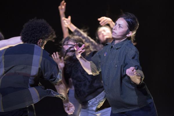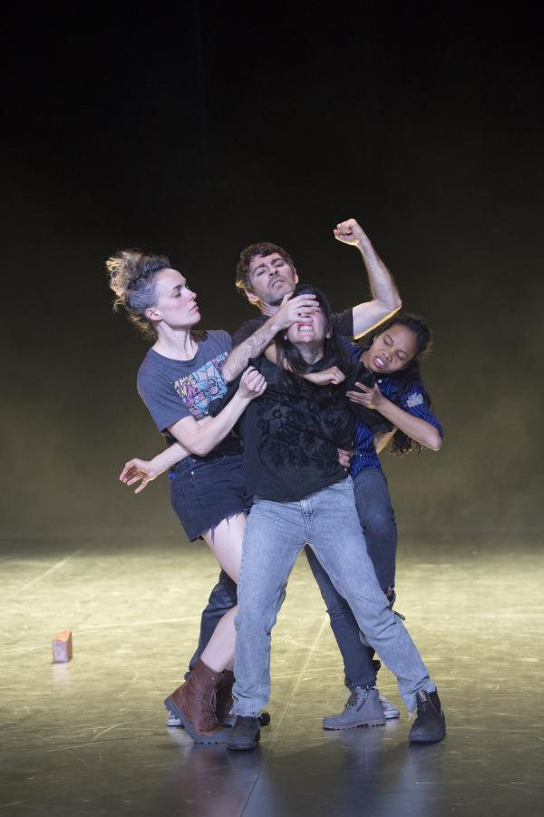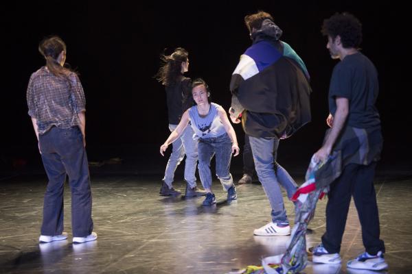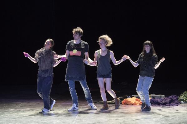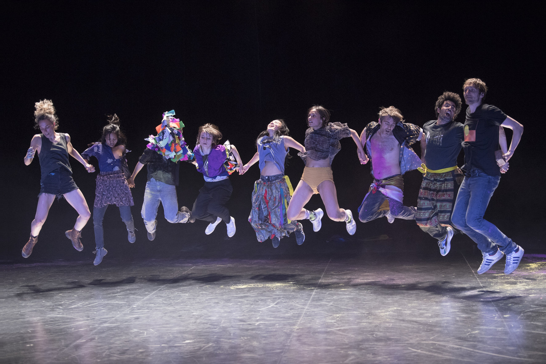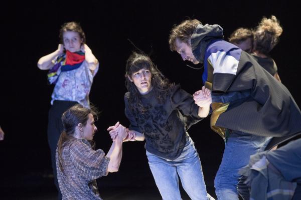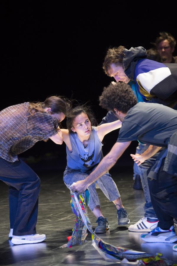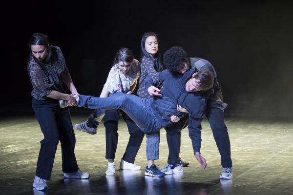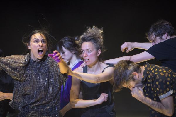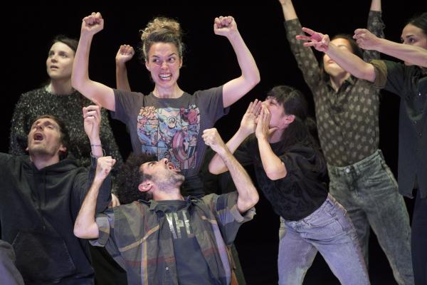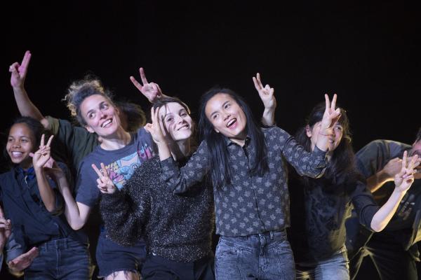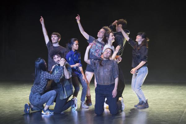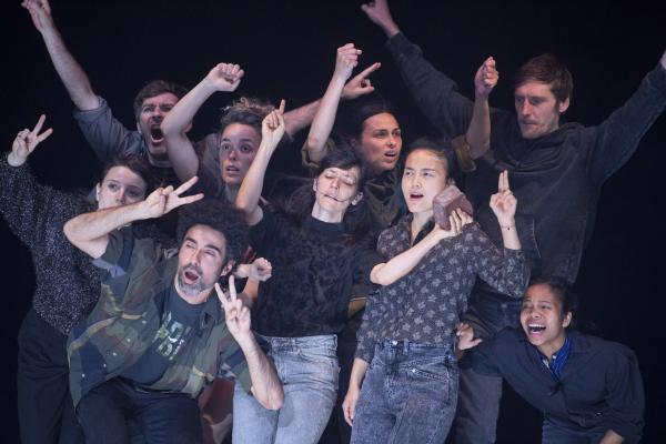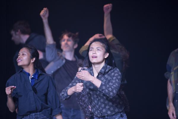Joanne Leighton mobilise un groupe de neuf interprètes pour interroger les grands rassemblements d’individus: Qu’est-ce qui relie les personnes qui manifestent ou dansent ensemble pour créer une sphère partagée, un espace commun qui peut être politique, utopique, sensoriel ou spirituel. Depuis longtemps, la chorégraphe collectionne des photos prises lors de grands rassemblements de personnes, unies dans une aspiration partagée. People United part de ces images, en reconstitue certaines et en superpose d’autres, unissant des mouvements de combats de rue à des gestes de liberté festive. Et il apparaît que les chorégraphies spontanées des manifestants et celles des teufeurs portent une exaltation partagée qui produit des gestes parfois similaires. La chorégraphique peut donc opérer des allers-retours entre les cris de « libertà ! », le poing levé, les visages en transe, les bras agités au rythme des beats… Il est vrai que dans certains pays, à certaines époques, la danse s’invitait dans les manifestations politiques.