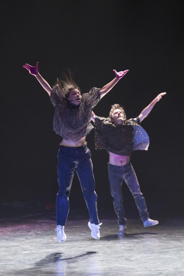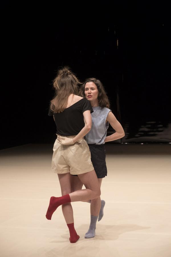 Si Elder et Santoro s’expriment par des gestes identiques, chacune les interprète avec un souffle personnel qui s’affirme même quand les corps amorcent une fusion symbiotique. On reconnaît bien l’écriture typique de Santoro, avec ses gestes réguliers et détaillés, toniques et trépidants, déclinés à l’infini, et tout autant son intérêt pour les neurosciences qu’elle étudia à Havard. Dans certains spectacles de Liz Santoro et Pierre Godard, la référence informatique et algorithmique avait pris le dessus, mais depuis quelque temps l’émotion est au rendez-vous sur le plateau.