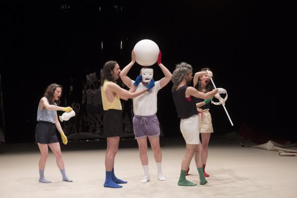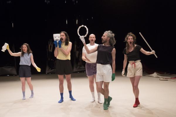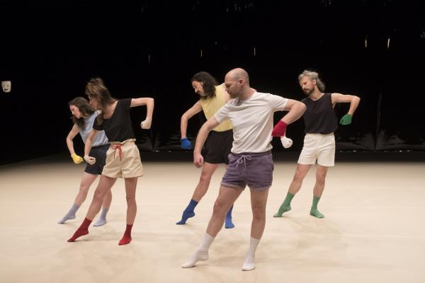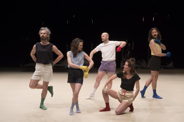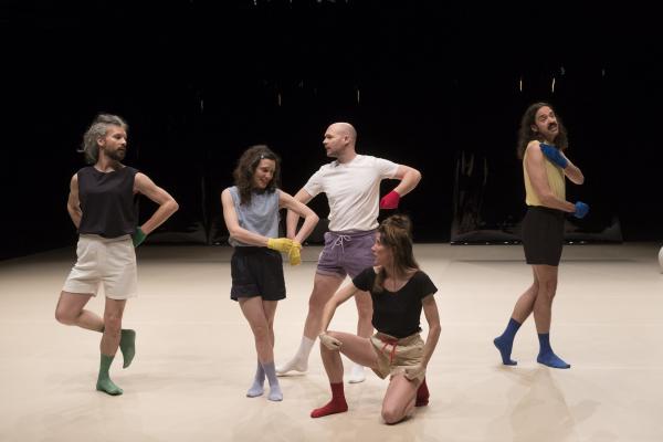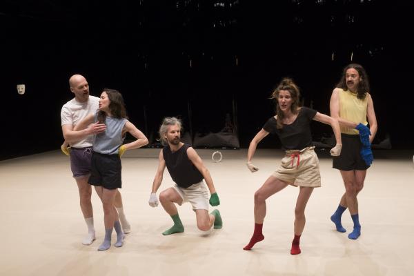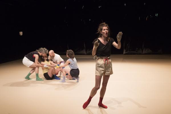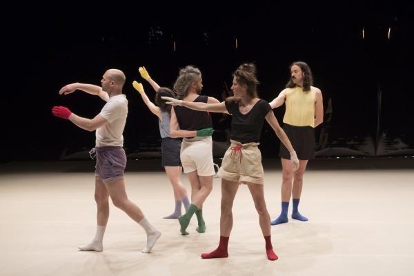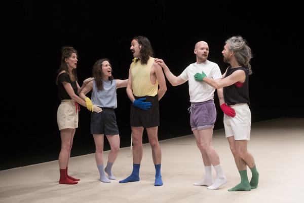 L’abondance vocale de La Chaleur propose un rite guérisseur placé sous le règne délicieux d’un second degré, à la fois baroque et contemporain. Et Madeleine Fournier, en passant de son solo fondateur tant acclamé [Labourer, lire notre critique] à un quintet, semble déjà avoir créé son icône visuelle : le gant de couleur. Qu’elle décline ici dans un esprit moins dramatique qu’ironique et jouissif. La Chaleur dit le désir d’être ensemble, de partager, de fusionner avec l’autre, ce qui signifie aussi l’espoir de prolonger sa propre existence au-delà de ses limites naturelles, être un peu l’autre, et aussi un brin immortel.