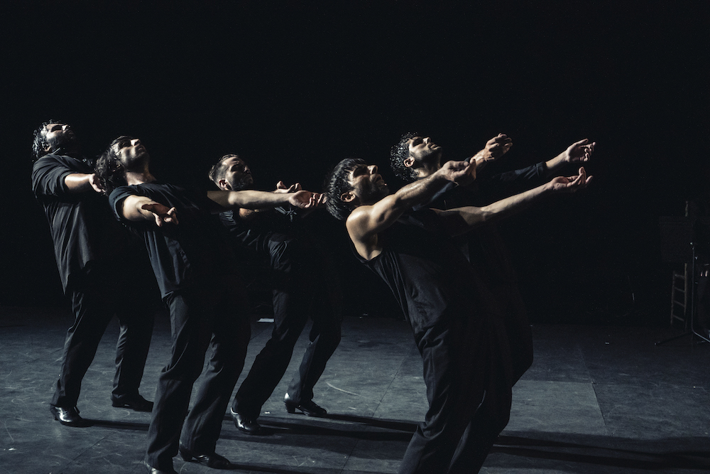 La compagnie d’Estévez et Paños propose un panorama historique du flamenco qui prend ses sources dans les danses anciennes et s’étend jusqu’à la période actuelle. Du flamenco masculin, devrait-on dire, la parité n’ayant pas ici été vraiment recherchée. La playlist musicale et chorégraphique fait se succéder sans interruption palos de base – seguiriyas, soleá, caña, polo, fandangos – et références folkloriques – aurresku, zarabanda, vedenza. Le projet est a priori des plus passionnants, qui relève de l’ethno-chorégraphie. Artistiquement parlant, la réalisation présente selon nous quelques faiblesses qui pourraient être corrigées en restreignant le corpus, clarifiant la structure et limitant la durée de la démonstration.