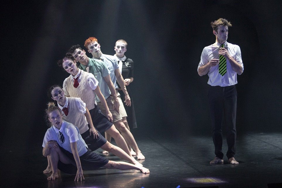 « La Leçon est bien une leçon sur la nature humaine, les rapports de pouvoir et le contrôle de la réalité », disent Pietragalla et Derouault. Cette leçon tient aussi par les unissons qui, sur un mode burlesque, au ralenti ou dans l’effervescence d’une rave party, donnent à cette Leçon une énergie collective qui sert autant la danse que la réflexion. Mais cette dernière entre en jeu après le spectacle qui, constamment secoué par les rebondissements aussi amusants qu’angoissants, tient en haleine de bout en bout. Aussi Derouault et Pietragalla font ressortir les fibres psychanalytiques d’Ionesco, dans les unissons comme dans les duos sans modération entre le professeur et sa victime, incarnée par une Manon Chapuis qui alterne entre provocation et états d’abandon fulgurants. On la voit par ailleurs aussi comme Juliette et comme Carmen dans Mythologies, autre spectacle récent du Théâtre du Corps.