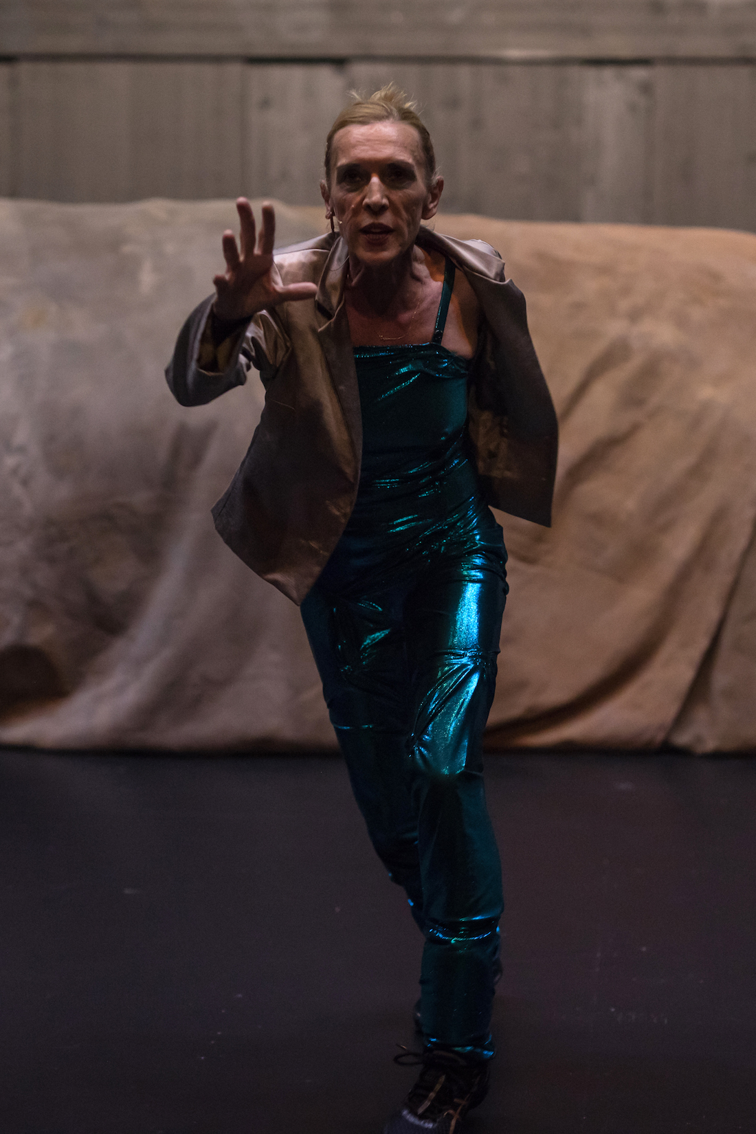 Enfin oscillant entre incompréhension et questionnement, le dialogue au micro avorté, impossible entre deux âges que tout semble opposer, la mère - Mathilde Monnier - et sa fille nouvelle née (La Ribot) met radicalement en question la notion de devenir. Il évoque aussi la vieillesse, la fin, l’impuissance. La pièce prend acte d’un patrimoine social sur l’avenir commun des sociétés devenu éclaté, brisé par les bouleversements et crises climatiques et l’absence de perspectives d’avenir social et vital pour les nouvelles générations.