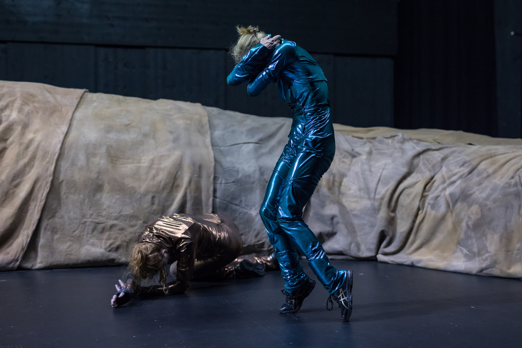 Pertinent alors de noter que ces quatuors à cordes révélant l’inassimilation de la culture musicale classique par Bartók donnent lieu dans la danse à une refiguration/dissolution fragmentaires et sous forme de véloce morphing corporel de nombre de figures, poses, gestes et mouvements puisés au néo-classique, au moderne et aux pièces des deux interprètes notamment. Il est tout aussi symptomatique que cet épisode scénique évoquant les cafards, connus pour leur résistance à toutes formes d’apocalypse nucléaire voire climatique, soit associé à un Bartok aspirant à une harmonie de la vie basée sur la nature et la liberté.