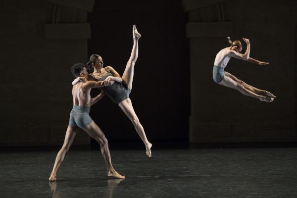 Ce fut très excitant d'observer, d'entrée de soirée, la pièce Tread, que Merce Cunnigham composa en 1970. Elle est pleine d'étranges figures, plutot délurées, fantaisistes. Des portés de toutes les manières, face-à-face et face-à-dos et quasi sac à dos. Des couchés penchés. Des écarts basculés. Des chutes sans barguigner. Des escalades d'épaules. Des agrippés par la cheville. De stupéfiants emboîtements dans un tournoiement de saute-moutons par-dessus la jambe tendue arrière du partenaire. Etc.