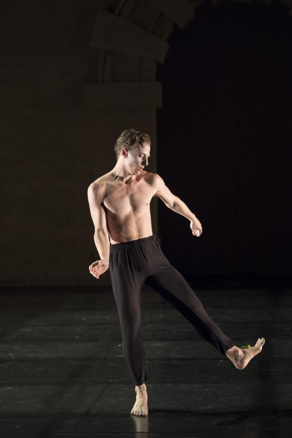 La troisième séquence historique restituait, dans un extrait hélas fort bref, et sur une sonorisation ahurissante (pitié, mais pitié pour Jean-Sébastien Bach, tout de même), les Goldberg Variations dansées en impro depuis 1986 par Steve Paxton. Il s'agit d'un chef d'oeuvre de la danse contemporaine. Le danseur Nicolas Sciscione en donne aujourd'hui une interprétation suprenante, mais non moins captivante, toute en rugosité assez cassée, teintée d'un genre de sauvagerie virile, loin de la cristallisation perceptive de l'état de corps paxtonien. On ne voit pas de raison de refuser a priori ce décalage plutôt gaillard.