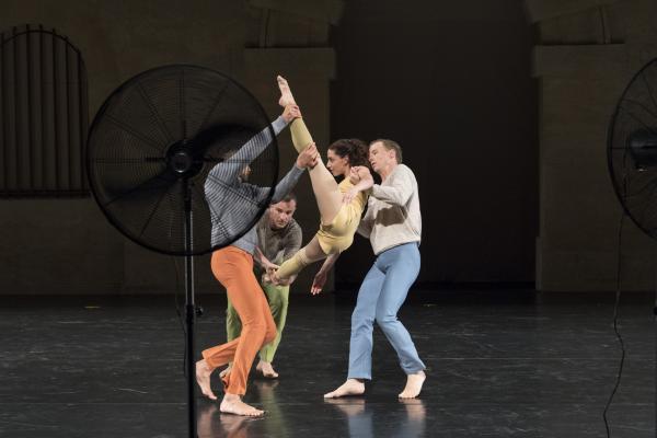 Retour sur scène. La combinaison du Trio A With Flags de 1970 (en silence) et celui originel de 1966 avec musique rajoutée, et dansé à quatre, donne à penser sur ce qui se fait visible ou invisible, ainsi que lisible ou pas, dans les signes dont est porteur tout corps dansant, combiné à sa scénographie. C'est plutôt passionnant.
