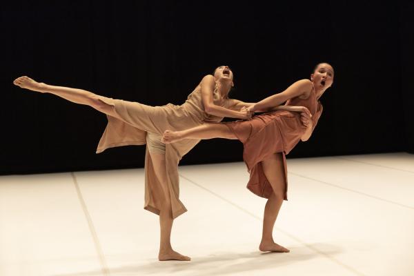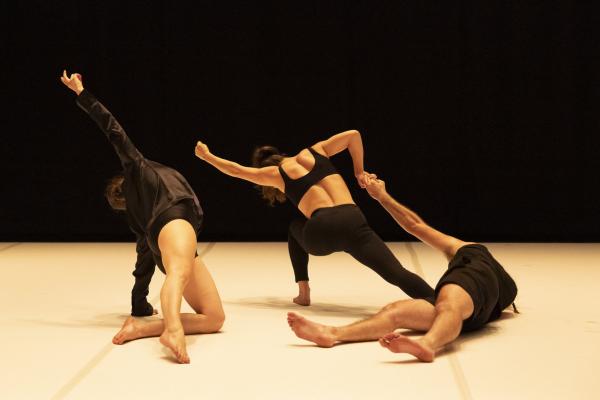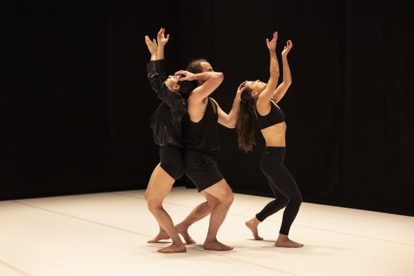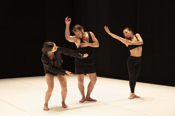 Enfin, Belsan, trio de Misan Miso Samara est au sens propre comme figuré une déflagration. Seule création conçue après le 7 octobre 2023, cette première mondiale au Théâtre de la Ville en porte pourtant la marque. Les déplacements latéraux sur jambes pliées, les uns collés aux autres, le silence tandis que les danseuses et le danseur évoluent de dos, les enchevêtrements de corps tandis que vrombit une sorte de bruit industriel, peut-être d’explosion.