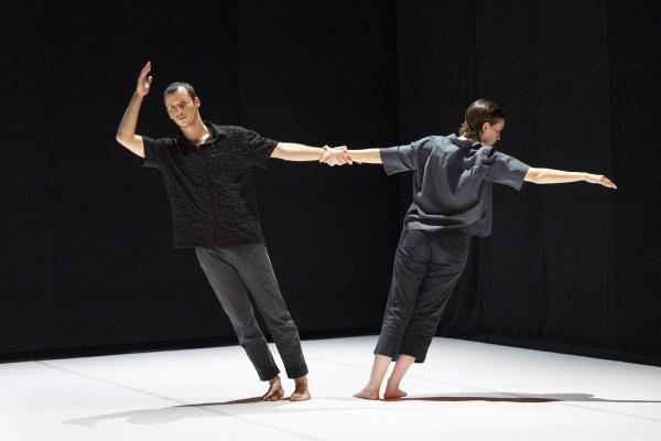 Très beau duo également, Arba, très millimétré et bien composé d’Ophir Kunesh qu’il danse en compagnie de Maya Navot. À la fois très formel et très tendre, très précis dans le travail des bras et très dynamique dans les sauts et les tours finis à genoux, ils dessinent une chorégraphie très fine tout en pleins et déliés qui rend ce duo très attachant.