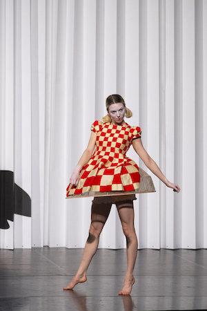 Cette soirée étant placée sous le signe de l’Histoire de la danse qui croise d’une certaine façon, celle du directeur et du coordinateur de recherche sortants au CCN Ballet de Lorraine, la deuxième pièce du programme est particulièrement bien inscrite dans le projet ! Fugitive archives de Latifa Laâbissi est une pièce pour huit danseuses, un collage chorégraphique où les fantômes du passé s’entrechoquent, mêlant le butō d’Hijikata Tatsumi, Le Marchand d’oiseaux de Jean Börlin (1923) et les Ballets suédois (1920-1925). Clin d’œil bien sûr à la nationalité de Petter Jacobsson ! Très expressives, les danseuses, déguisées en petites poupées ou en petites filles pas sages, sont impayables dans leurs minauderies. Les ombres particulièrement bien travaillées par les lumières d’Éric Wurtz nous font plonger dans un univers de conte pour grands enfants. Extrêmement amusante, avec ses références diverses et variées liées à « l’avant-garde » du début du XXe siècle (notamment quelques poses et sauts de l’Élue du Sacre du printemps de Vaslav Nijinski, 1913), la bien nommée Fugitive archives en est une sorte de raccourci contemporain saisissant !