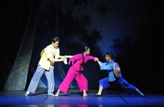 Le Détachement féminin rouge de Wang Xixian, par le Ballet National de Chine, au Théâtre du Châtelet. Avec Zhang Jian (Wu Qionghua), Zhou Zhaohui (Hong Changqing), Li Jie (Le Commandant), Wang Qi (Xiao'e), Wang Hao (Xiao Pang), Zhu Yan (Camarade en armes), Jiang Wei (Lao Si), Li Ke (Nan Batian) et Xu Yan (Chef de danse des filles de la communauté Yi).
