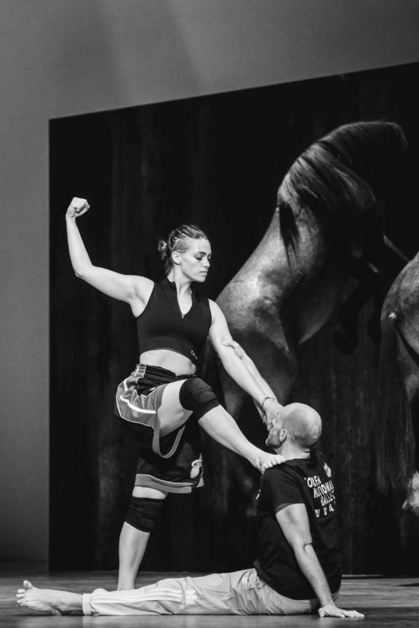 Les danseurs du Ballet de l’OnR incarnent ici les guerriers des deux familles qui s’affrontent, mais sont aussi des extensions des personnages principaux chantés. Pour se fondre dans l’histoire et l’ambiance, ils ont reçu l’entraînement en arts martiaux du maître Saju Hari. Également danseur et chorégraphe, Hari a entre autres collaboré avec Shobana Jeyasingh et Akram Khan. Et si Hari, Jeyasingh et Naïr sont tous nés en Inde, les deux premiers vivent à Londres et Naïr à Paris, faisant de ce nouveau Until the Lions en même temps un antidote au Brexit. Beau retournement, comme dans le proverbe africain qui donne le titre aux deux adaptations de Karthika Naïr : « Jusqu’à ce que les lions aient leurs propres historiens, l’histoire de la chasse sera toujours racontée à la gloire du chasseur. » Remplacez donc « lions » par « femmes »…