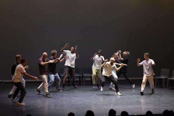 En effet, grâce à l’intense intériorité des interprètes qui, si bien dirigés par Kader, ne sont pas là pour exhiber un numéro de cirque, mais pour relater des souvenirs du chorégraphe qui, avec tendresse et humour, évoque, entre des tableaux, la naissance inattendue de son frère jumeau puis sa passion indéfectible pour la danse. Une conception de l’art qu’il relie avec celle d’Albert Camus, dont on entend son discours pour sa réception du prix Nobel en 1957 : « Je ne puis vivre personnellement sans mon art. Mais je n’ai jamais placé cet art au-dessus de tout. S’il m’est nécessaire au contraire, c’est qu’il ne se sépare de personne et me permet de vivre, tel que je suis, au niveau de tous. L’art n’est pas à mes yeux une réjouissance solitaire. Il est un moyen d’émouvoir le plus grand nombre d’hommes (…). L’artiste se forge dans cet aller-retour perpétuel de lui aux autres, à mi-chemin de la beauté dont il ne peut se passer et de la communauté à laquelle il ne peut s’arracher. (…)"