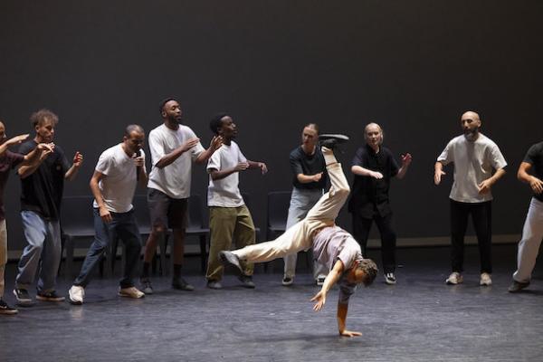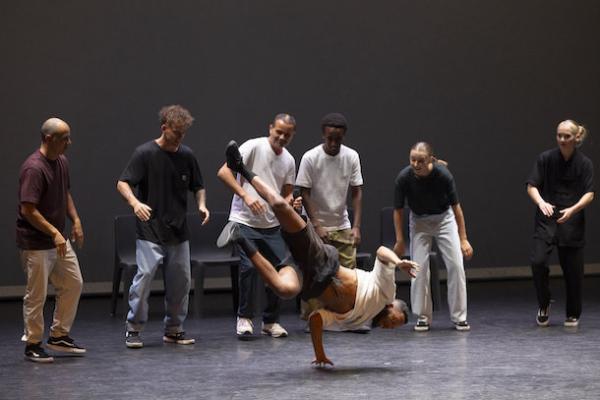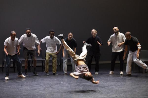 Quelques jours plus tard au théâtre Jacques Prévert d’Aulnay-sous-Bois, Kader Attou présente Prélude, interprété par neuf danseurs hip-hop installés (comme sa compagnie Accrorap), à Marseille. Le chorégraphe signe ici une autre partition toute aussi intime puisqu’il revient à ses origines, le hip-hop, tout en intervenant plusieurs fois sur scène pour raconter quelques anecdotes sur son passé.