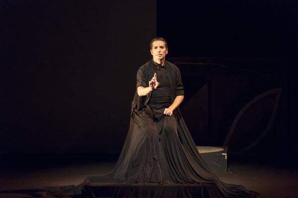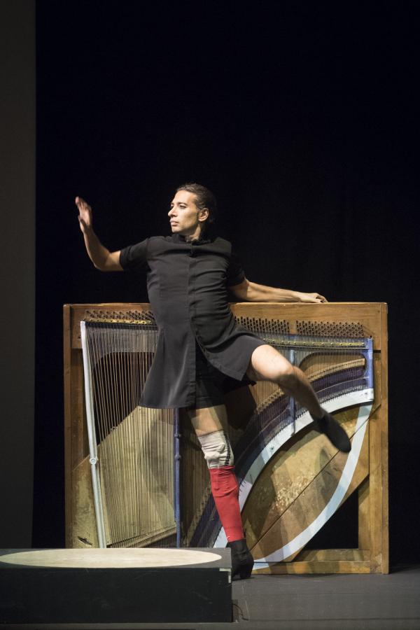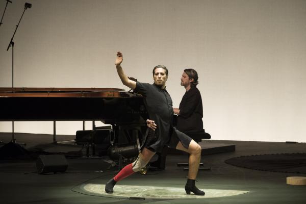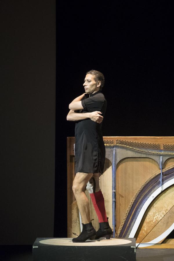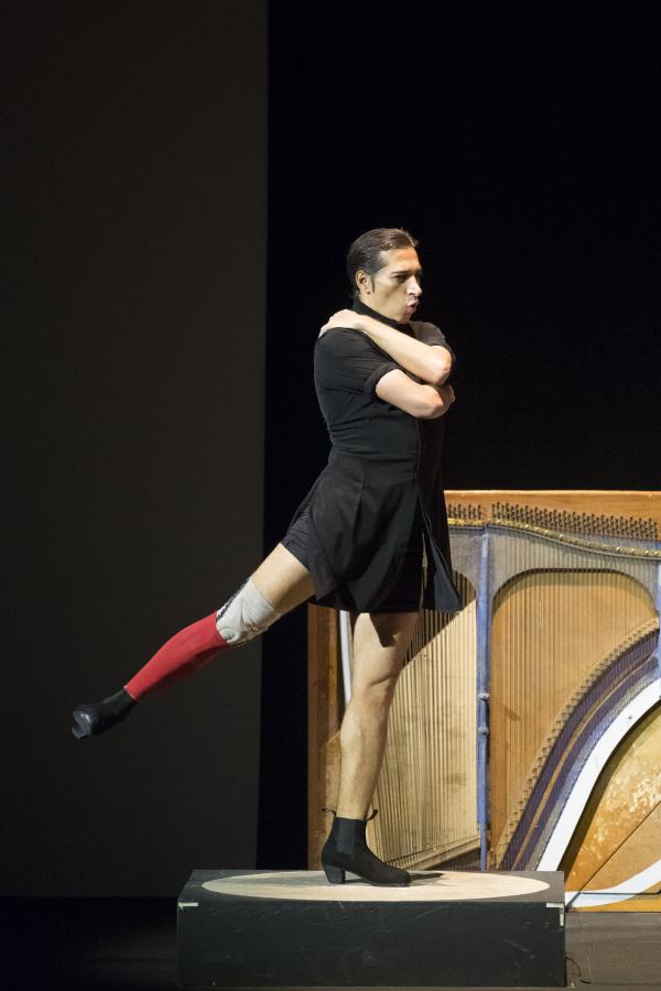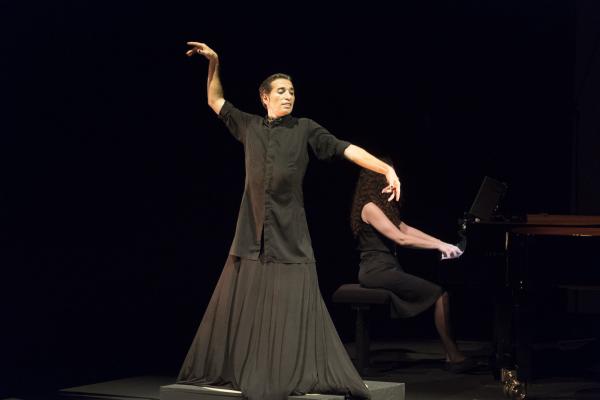 Alors que son zapateado se frotte à Stravinski, le remue, le suit ou le défie, Galván se fait homme-orchestre chorégraphique. Vêtu d’un chemisier noir, il évoque les hommes et les femmes de cette communauté qui tente de sortir de printemps de la terre. Il plonge dans un univers archaïque comme chez Lorca, et il défie les dieux-pianistes comme Nijinski défiait la bonne société dans son solo à l’hôtel Suvretta de Saint-Moritz. Du « clown de dieu » qui avait rencontré Chaplin, Galván hérite d’accents burlesques et fait des pas de côté, en direction de la féminité.
