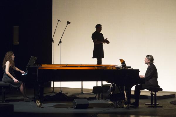Courvoisier a donc composé, selon elle-même « pour préparer l’auditoire au déferlement sonore qui va suivre », une introduction - intitulée Conspiración- où Cory Smythe, en duo avec la compositrice, s’adresse aux cordes de façon directe, brute, rauque et presque musclée, comme pour rappeler d’emblée les enjeux du Sacre, faits de terreur, d’extase et d’espérance. Mais l’idée qu’il faille préparer le public au Sacre peut laisser perplexe. On tablerait plutôt sur une Conspiración entre Galván et les pianistes, leur permettant « d’accorder leurs violons », comme on dit. Ou encore sur une volonté de rappeler que Le Sacre du printemps fut une œuvre de rupture. Mais pour Galván, c’est autant une continuité, depuis le chef-d’oeuvre La Curva qu’il partagea avec Courvoisier.