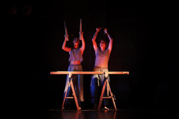 Après eux, Beñat Achiary semble vouloir envoyer son chant à travers monts et vallées. Mais il pratique un art vocal du déchirement, des interstices et espaces sonores. Mizel Théret, danseur aérien s’il en est, lui répond par un gestus épuré, où la sève de la terre rencontre la légèreté autant que la puissance tellurique des sculpture géométriques de Jorge Oteiza. Par son free jazz basque vocal et gestuel, le duo abolit toute opposition entre l’ancien et le nouveau, entre racines et avant-garde. Face au fronton, Théret charge ses gestes d’éternité silencieuse et de bruissements émotionnels. Et parfois son corps semble se transformer en txalaparta, comme pour répondre à la présence des bâtons en bambou d’Achiary l’instrument basque qui rappelle le xylophone (mais tout autant le balafon).