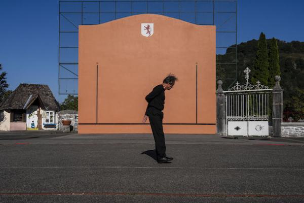 Il va de soi que Théret, s’il décortique aujourd’hui ce patrimoine sportif sous un éclairage chorégraphique, n’a pas seulement pratiqué la danse basque, mais également, à l’instar de son partenaire et alter ego musical, ce sport physiquement exigeant qu’est la pelote. Ce qui rappelle immédiatement la très belle exposition photographique de Polina Jourdain-Kobycheva, dévoilée au Temps d’Aimer en 2022, qui avait réuni, chaque fois sur un seul cliché, danseurs du Malandain Ballet Biarritz et pelotaris biarrots. Alors, fronton emprunté, fronton rendu : Dès que le duo Théret/Achiary a reçu les applaudissements du public, et à Itxassou ils furent unanimes, les joueurs ont été de retour sur le bitume avec leurs raquettes.