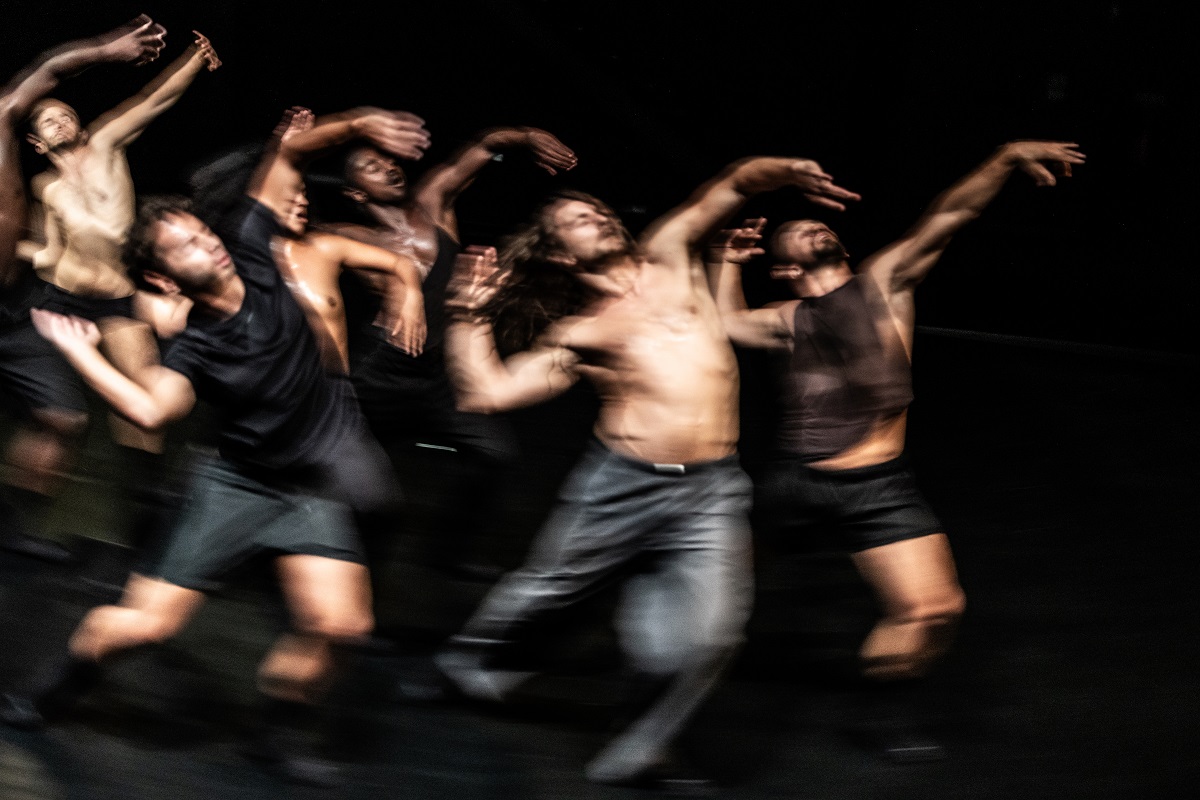 Comment se réunit, se compose, se structure et se déplace un corps collectif ? Chez Christos Papadopoulos, mais aussi chez Sharon Eyal l’unisson semble ne pas se réaliser complètement. Et pourtant il est présent en permanence, en état de devenir. Chez Eyal, une utopie constamment mise en échec par les états intérieurs des individualités qui ne cessent d’y aspirer. Chez Papadopoulos un état-source, une énergie partagée, un état de corps en dialogue avec des éléments imaginaires qui conditionnent les mouvements collectifs.