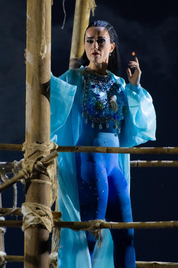 C’est la raison pour laquelle il s’agit d’une performance d’arriver à créer des pépites artistiques au sein de cette foule. Thomas Lebrun n’a donc pas lésiné. Il introduit continuellement des partitions de danse qui ne sont que rarement en corrélation avec l’histoire. Entre des déhanchements coquins de danseurs revêtus de tutus de style romantique, la sublime danse de Siva (c’est écrit ainsi dans la partition), l’apparition sur pointes d’un fantôme féminin recouvert d’un voile blanc, le duo d’une rumba irrésistible, un jeu de cache-cache sous les jupons, et en fin de pièce un french cancan qui fait rire la salle, le metteur en scène et chorégraphe étoffe à merveille cet opéra de Bizet.