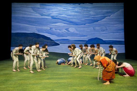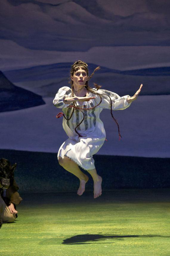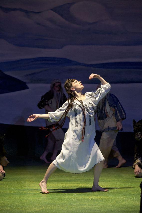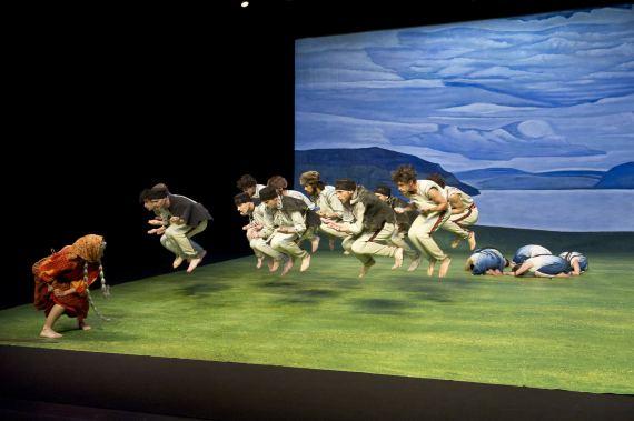 La dynamique n’est jamais démonstrative, encore moins éclatante. Du coup, on comprend mieux l’interprétation musicale qu’en donnait Stravinsky lui-même quand il dirigeait son Sacre. Ce qui pouvait passer pour une sorte de « mollesse » devient totalement raccord avec cette chorégraphie qui, comme le diable, niche sa sauvagerie dans les détails et non dans l’évidence des éclats de la partition. Les courses ramassées, les heurts, l’asymétrie, les marches obstinées, les sauts sans élan. On peut du coup lire la sidération de l’Élue qui danse « à son corps défendant », la violence que manifestent les tremblements et le prosaïsme qui se nourrit aux danses traditionnelles des groupes.