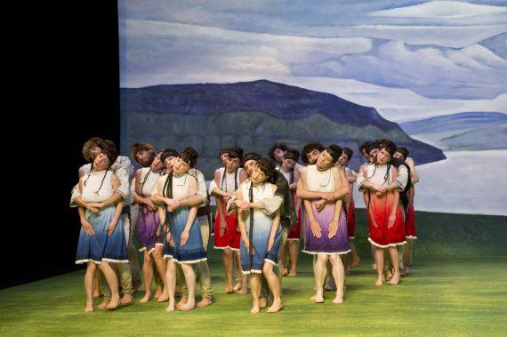 Et le résultat est saisissant. En réunissant une distribution de 30 danseurs contemporains pour s’emparer de cette écriture brute, dont la gestuelle leur est certainement plus familière qu’à des danseurs classiques, la chorégraphie semble soudain rafraichie. On voit soudainement apparaître les difficultés de la partition telles qu’elles nous ont été relatées par les témoins car la danse est éclatée, les groupes souvent décalés et suit la ligne musicale sans être pile sur le temps fort. La chorégraphie, radicalement contemporaine, avec ses pieds à plat, y compris dans les sauts, les postures volontairement en dedans, qu’il s’agisse des genoux, des pieds ou même des épaules, les secousses et les tremblements témoignent d’une écriture totalement originale.