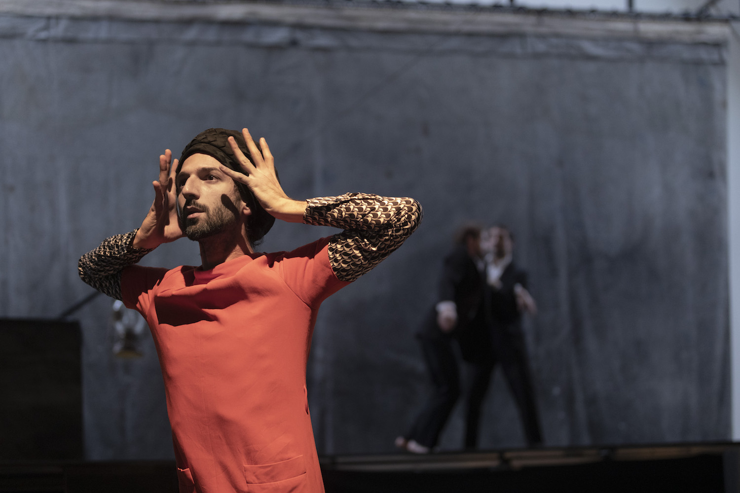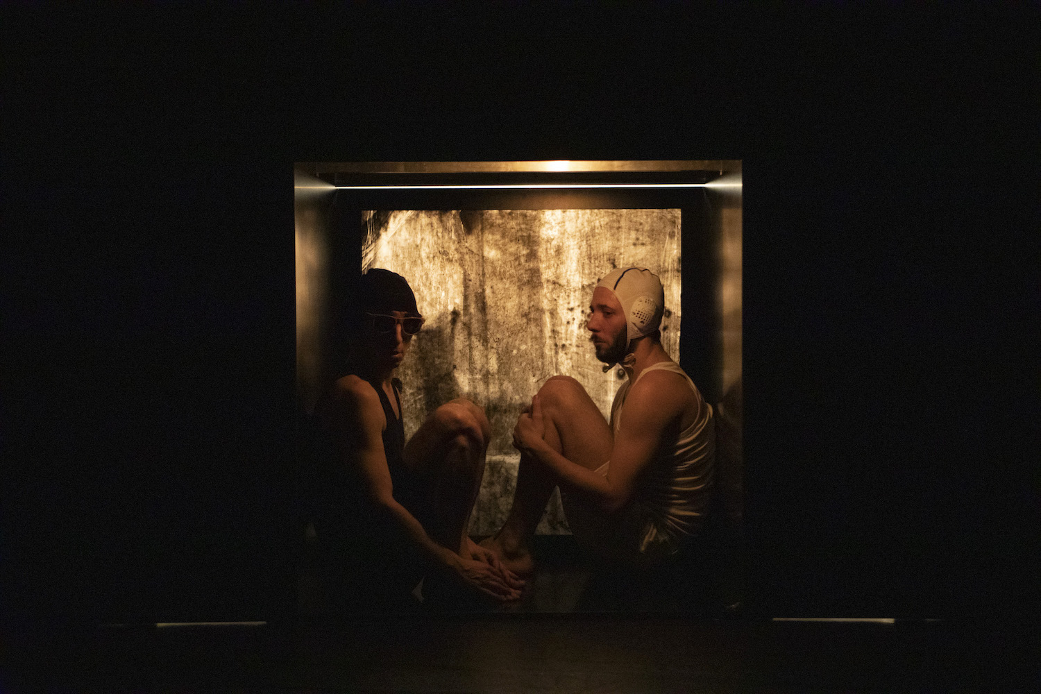 Ce conte sans paroles a pour acteurs d’étranges créatures et, pour décor, une atmosphère embrumée, surréelle, pas moins énigmatique, qu’accentue le clair-obscur dominant mais aussi une lampe à incandescence ne cessant de glisser sur le câble où elle est accrochée et des velléités d’éclairage ponctuel résultant du parti pris dramaturgique de Guillaume Toussaint Fromentin. La composition électro-acoustique de David Monceau rythme le déroulé et anime la fin du spectacle avec deux tangos traditionnels chantés en langue russe. Le cartoon de Norstein déteint sur la chorégraphie même de Lichens. L’abstraction gestuelle vire vite à la loufoquerie intégrale. Une folie douce s’empare des interprètes qui, par endroits, participe de la transe, pour ne pas dire de la chorée.