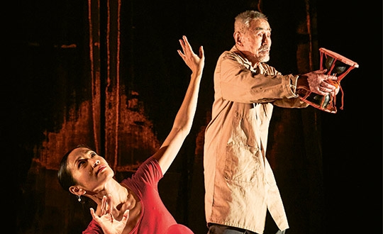 Chez Kaori Ito et Yoshi Oïda le théâtre est même le point de départ, avec l’adaptation du nô moderne Le Tambour de soie, à son tour adapté par Jean-Claude Carrière. Une rencontre entre un homme âgé et une jeune femme qui tient du fantasme, du mythe, du fantôme nô et d’une sensibilité japonaise qui vient de loin, mais est pourtant résolument contemporaine [lire notre critique]. Aussi Ito et Oïda naviguent entre écriture contemporaine et danse, flûtes et tambours traditionnels japonais. Cette rencontre entre l’une des chorégraphes les plus prolifiques du moment et le grand acteur de feu Peter Brook met en lumières à quel point le récit et la fiction sont des manières de se reconnecter avec l’essence de l’humain et donc aussi une voie à exploiter par la danse, pour rester en lien avec son public.